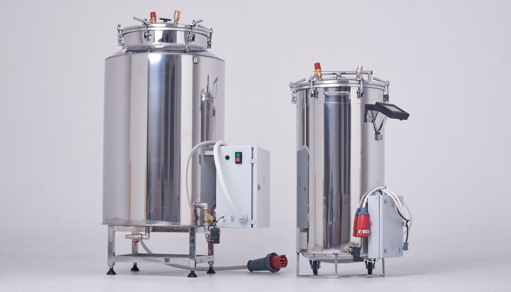 Электрические аппараты работают от ТЭН, который включается на поддержание заданной температуры и экономит энергию. Эффективное охлаждение за 30 минут дает возможность разгрузить партию без разрывов тары и переработать больше продукции в сутки. Емкость на 22 л подойдет для личного использования, на 46, 125 литров — для изготовления на продажу.