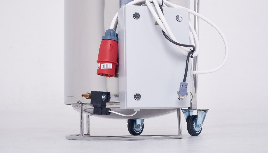 Аппарат комплектуется электрошкафом с автоматическим выключателем и пускателем, работает от сети 380 В. Внутри установлен блок ТЭНов с защитным фальшдном. Такое решение гарантирует долговечность и бесперебойную работу даже при ежедневной загрузке.